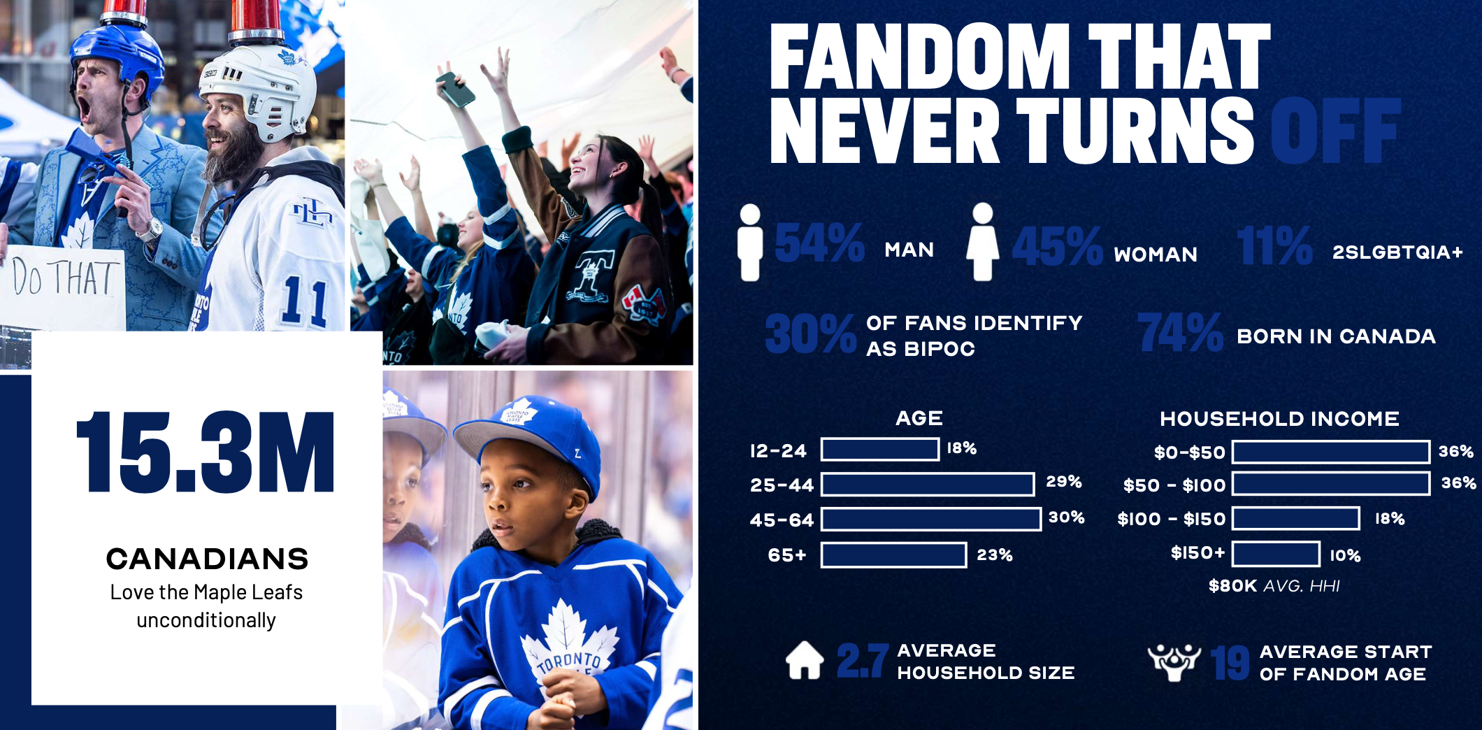 MLSE & Toronto Maple Leafs fan demographics: identifying that 45% of the Leafs' audience is female but underserved in marketing efforts.
