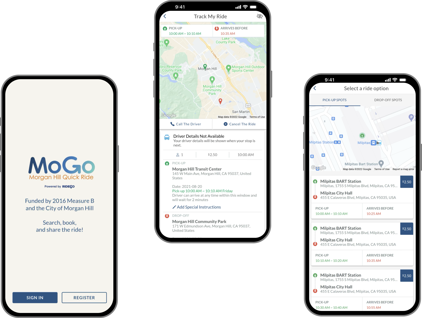 MoGo is Morgan hills on demand ride share service. Mogo offers trips to and from fixed points citywide, within a 10 minute walk to all neighbourhoods and stops at downtown, shopping centres, recreation facilities, businesses, and community spaces! The new service is for short trips and uses small vehicles (seeing up to 5 customers). The service is meant to be fast, safe, and convenient option for quick trips.